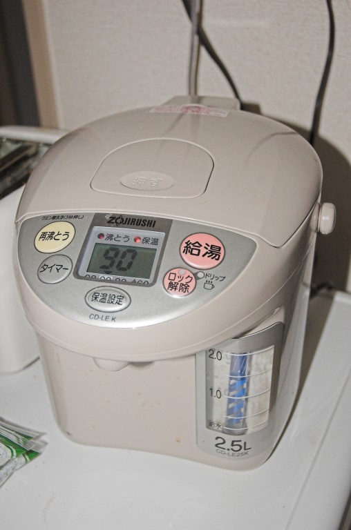 Der Wasserkocher hält ständig einen Vorrat an Heißwasser bereit -- und gibt es nur denen, die Kanji lesen können.