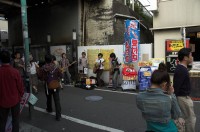 Vor dem Bahnhof in Shimokitazawa, Hikos Wohnort