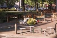 Unter der Brücke einer Schnellstraße: Anscheinend ein Zuhause Obdachloser.
